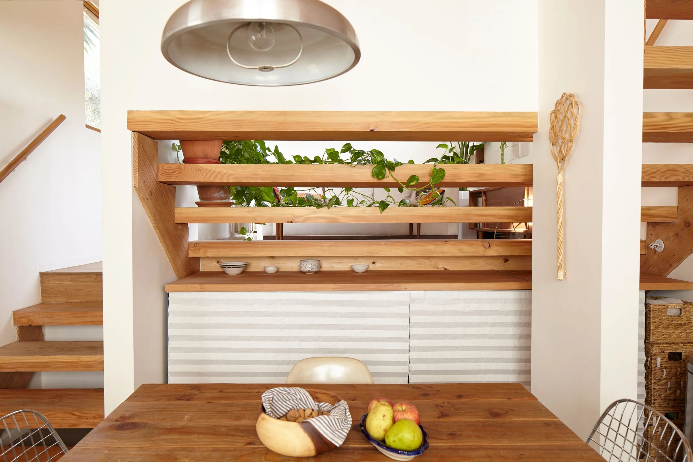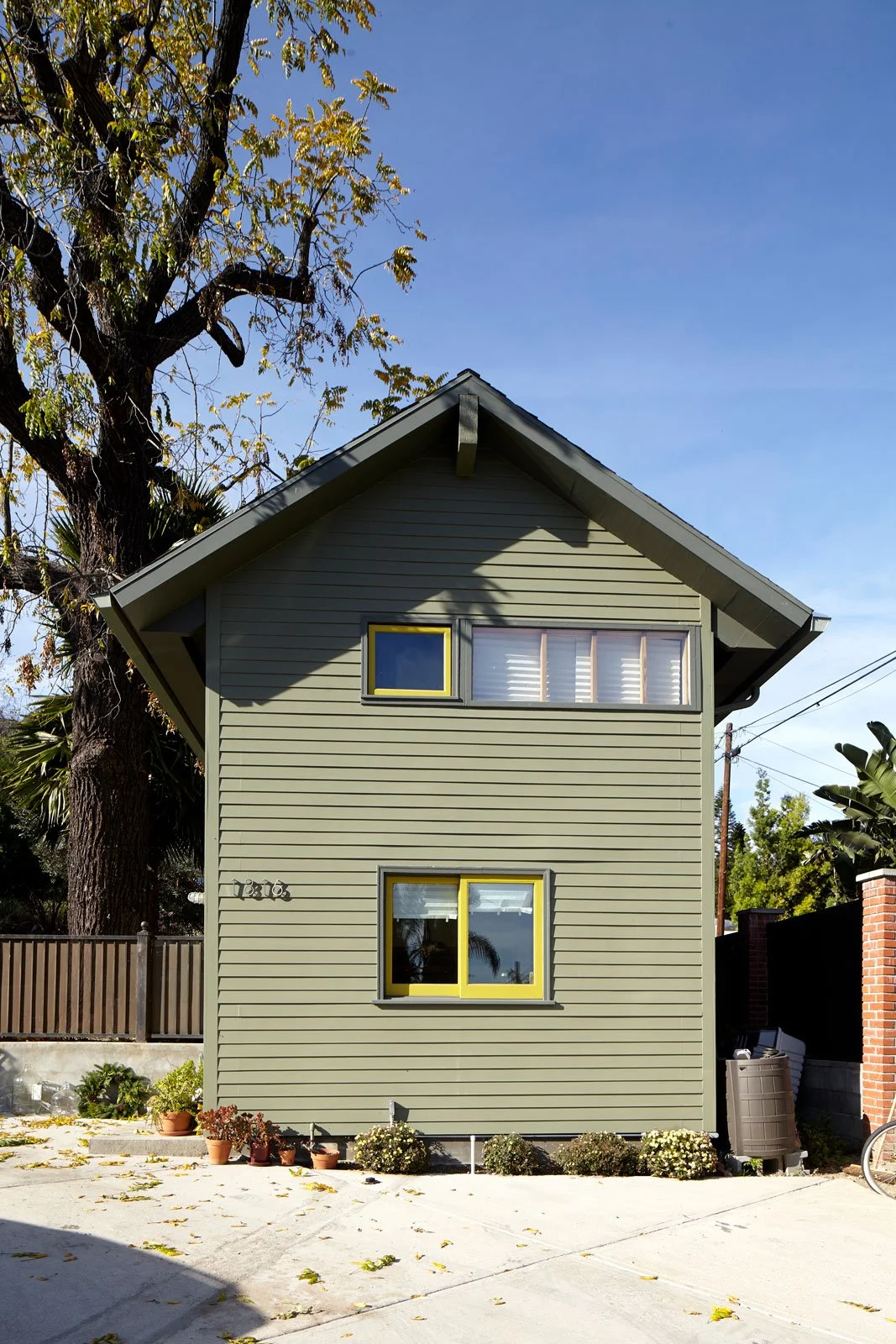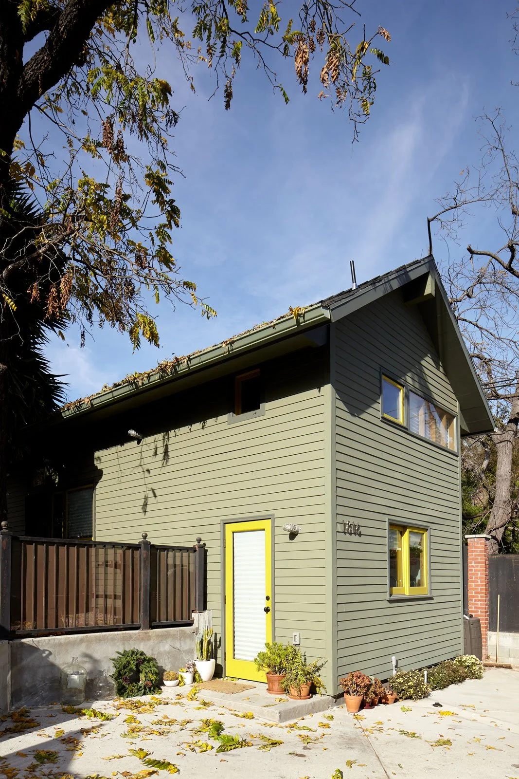 Located in Solano Canyon next to downtown Los Angeles, the two bedroom, one bath house frames the natural surroundings and creates a cabin like space that is contemporary but also warm and intimate. The ceiling, made of clear douglas fir, emphasizes the linearity of the house and helps make the house feel bigger as well as cozy.