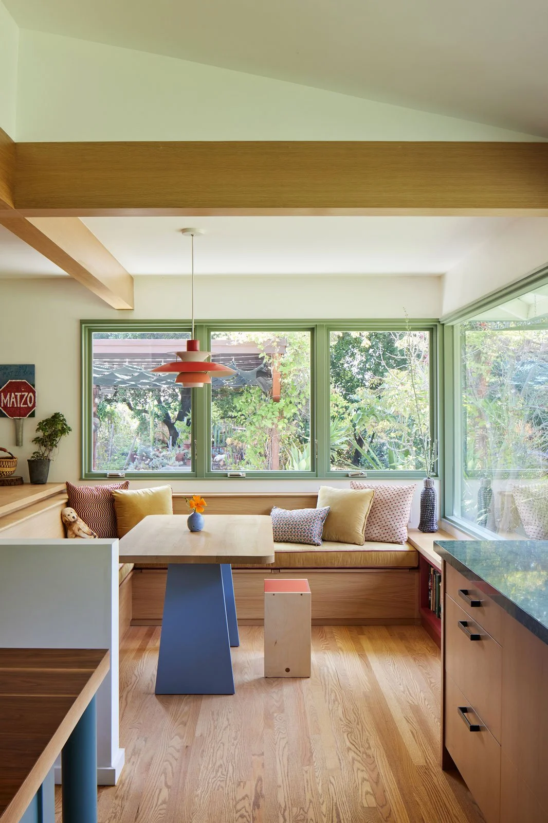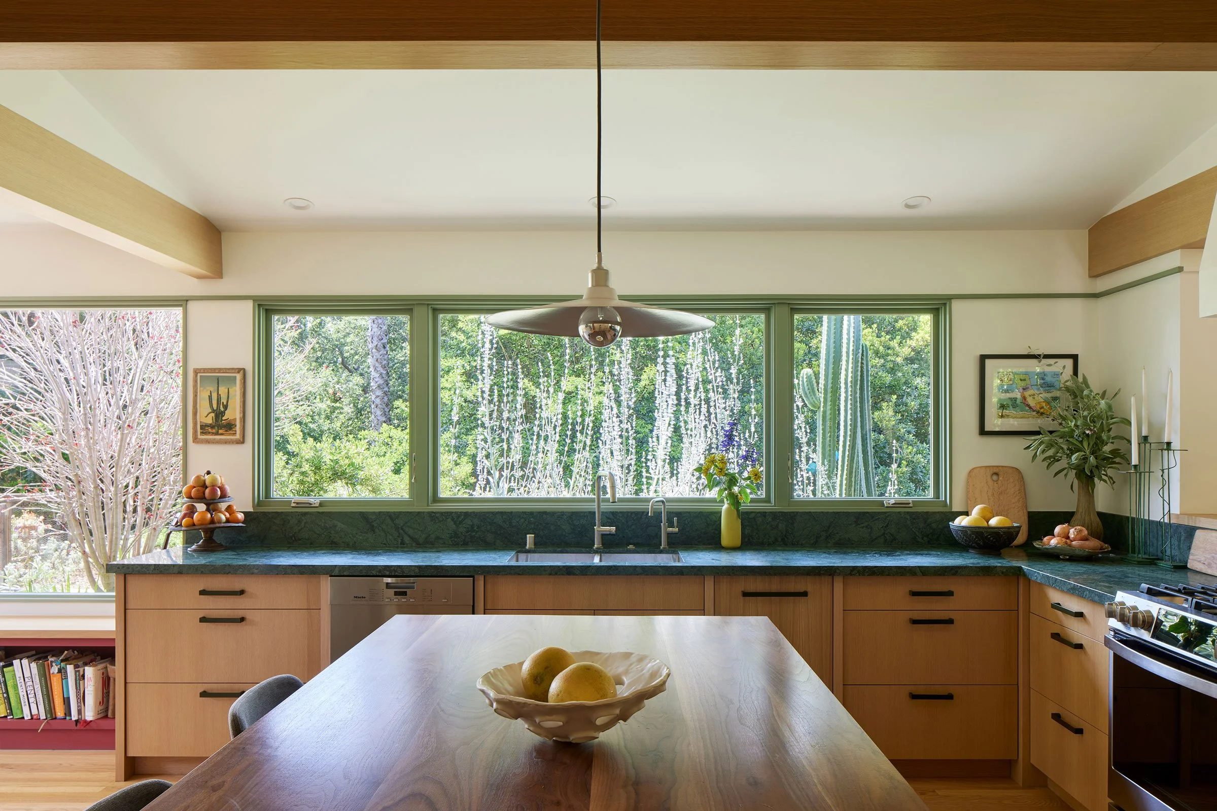 A real rethink on this house that moved the kitchen to a more central position and opened the whole place up. But even while it’s open, intimate spaces are created so it never feels too large. Many favorite spots are created all paired with moments from the garden. Up near the Angeles Forest, the climate is wetter and cooler along the foothills and it makes for beautiful lush gardens blessed by the LA sun and a wetter microclimate. This wonderful garden is woven with the interior spaces.