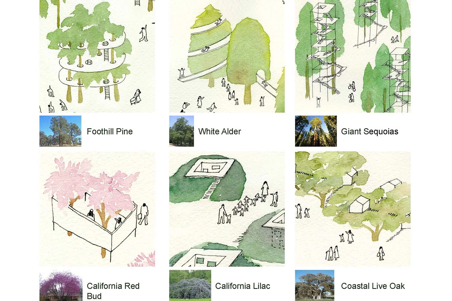 The quarterly magazine GOOD asked Bunch to address a question that had been posed by the founder of the wonderful organization, The Tree People. Bunch noted that there are as many faces of people as there are trees. "Tree People" took on a whole new meaning for us. Imagine if houses were not designed for people but rather for trees and people populated the spaces between houses and tree? Imagine a house as a "Jacket for a tree" or "Houses for Tall Trees".